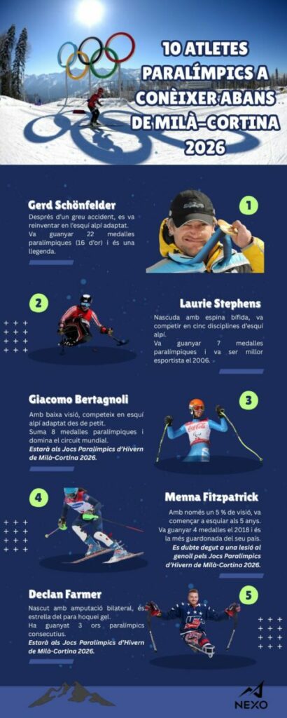 A les portes de Milà-Cortina 2026, aquesta infografia presenta deu atletes paralímpics dels jocs d’hivern que exemplifiquen l’excel·lència i la superació en l’esport adaptat.