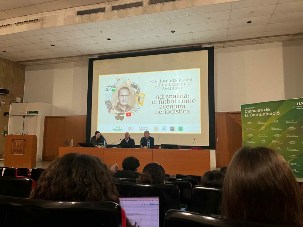 L’Aula Magna de la Facultat de Ciències de la Comunicació de la UAB ha acollit aquest 1 de desembre la XIV Jornada “Viatges, Comunicació i Aventura”, que ha estat organitzada pel Gabinet de Comunicació i Educació de la universitat. L’edició d’enguany, sota el títol “Adrenalina: el futbol com a aventura periodística”, ha combinat presentacions, converses i reconeixements vinculats al periodisme de viatges i a la narrativa esportiva amb protagonistes d’alt valor.