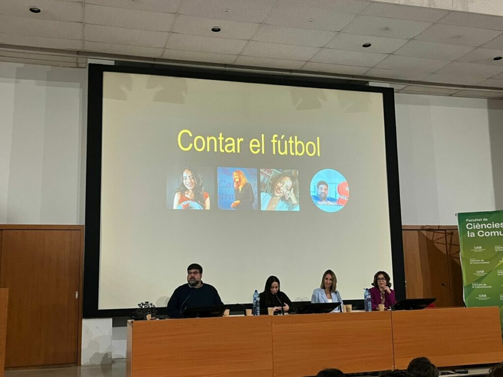 Després d’una breu pausa, la jornada ha reprès l’activitat amb una taula rodona dedicada a l’anàlisi de la cobertura futbolística. Les periodistes Iris Miquel, Mireia Sanz i la investigadora Giovanna Mapelli, moderades pel periodista Xavier Ortuño, han reflexionat sobre els models narratius del periodisme esportiu i els canvis que ha comportat l’evolució dels formats digitals. Cadascuna ha aportat punts de vista generacionals diferents, fet que ha enriquit la conversa i els temes el qual han tractat sobre el futbol i els nous mitjans.