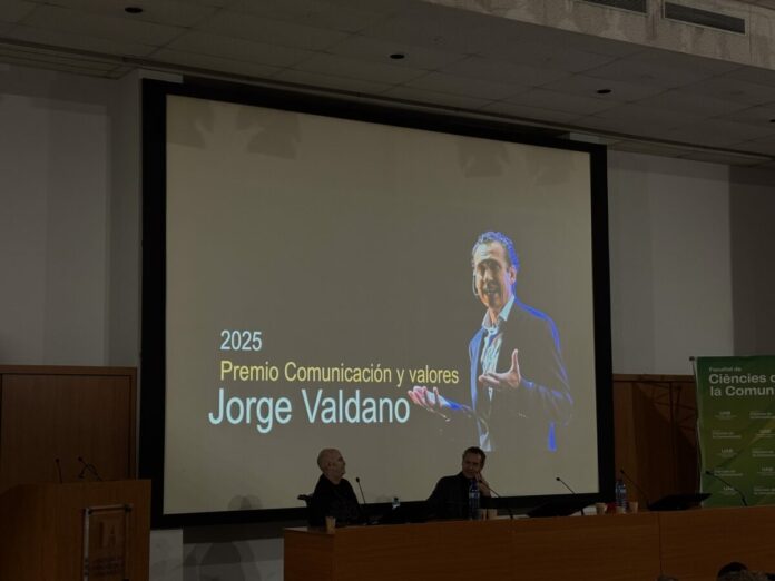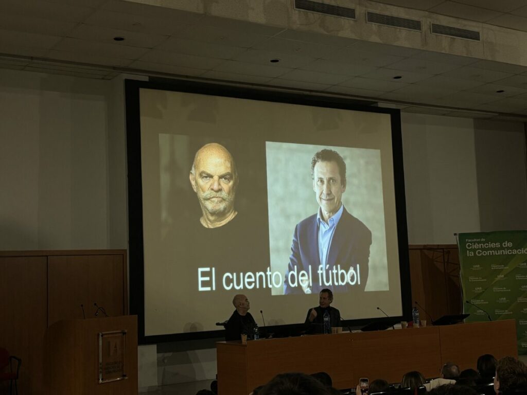 La Facultad de Ciencias de la Comunicación de la UAB celebró el pasado lunes la XIV edición de la Jornada “Viajes, Comunicación y Aventura”, titulada este año Adrenalina: el fútbol como aventura periodística. El encuentro, que reunió a periodistas y estudiantes de 9:00 a 15:00 en el Aula Magna, dedicó su tramo final al fútbol y entregó por primera vez el galardón Comunicación y Valores al exfutbolista, comentarista y escritor Jorge Valdano, que recibió el premio entre aplausos.